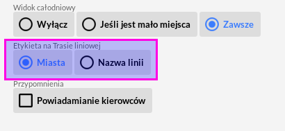 Została dodana możliwość wyświetlania nazw miast na paskach tras pochodzących z linii, zamiast domyślnie wyświetlanej nazwy linii: