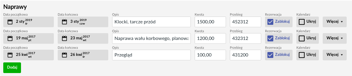 Wszystkie naprawy danego pojazdu zostaną również zarchwizowane w Karcie Pojazdu